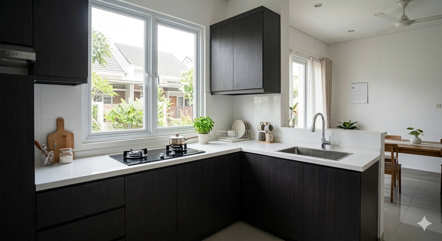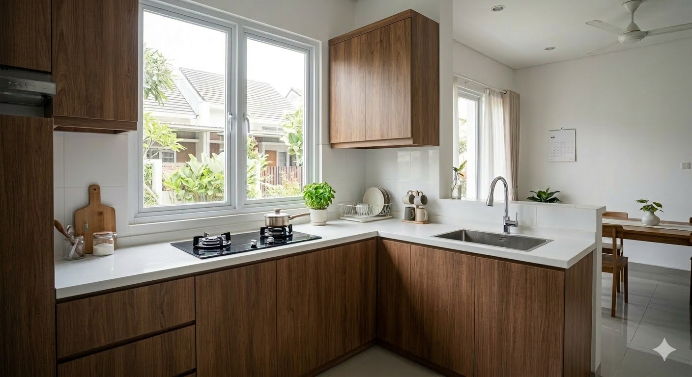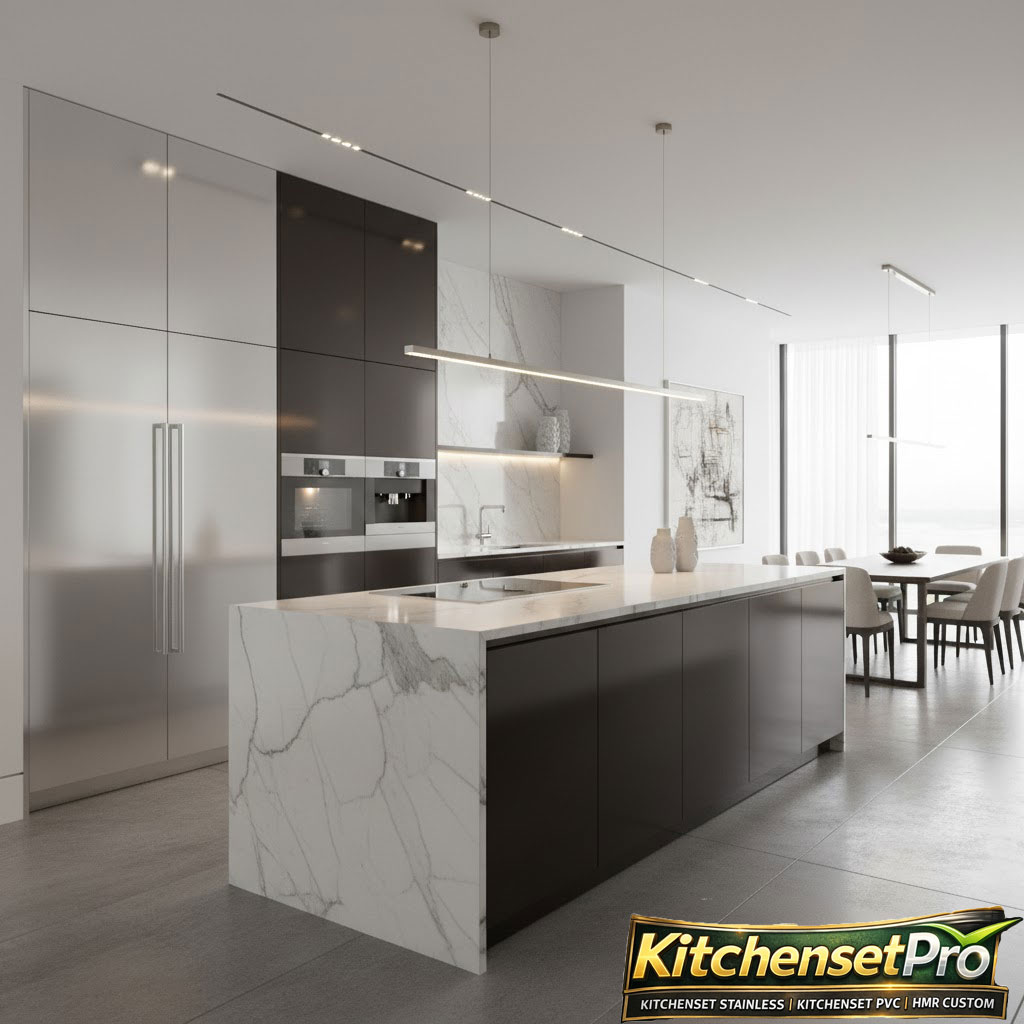 Kitchen set aluminium ACP dengan desain modern, tahan air, dan mudah perawatan untuk dapur yang lebih rapi dan elegan.