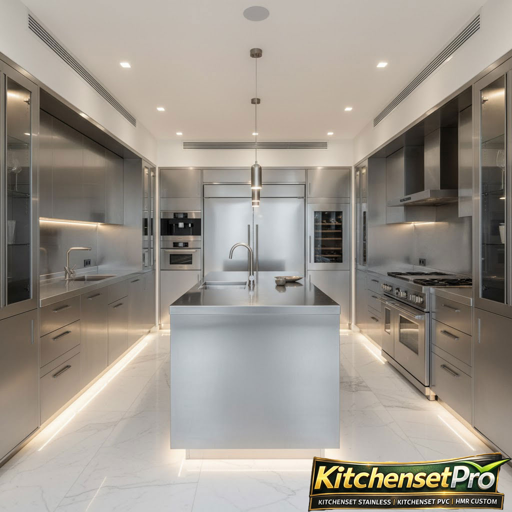 KitchensetPro merupakan perusahaan jasa pembuatan kitchen dapur dengan bahan stainless steel 201, bahan Alumunium ACP, PVC , HMR Board atau Polywood Board dan juga menyediakan fabrikasi peralatan dapur restoran, instalasi gas dapur, instalasi ducting exhaust dan instalasi fresh air dengan pendekatan layout 3D atau 2D dalam ruang dapur anda secara profesional.